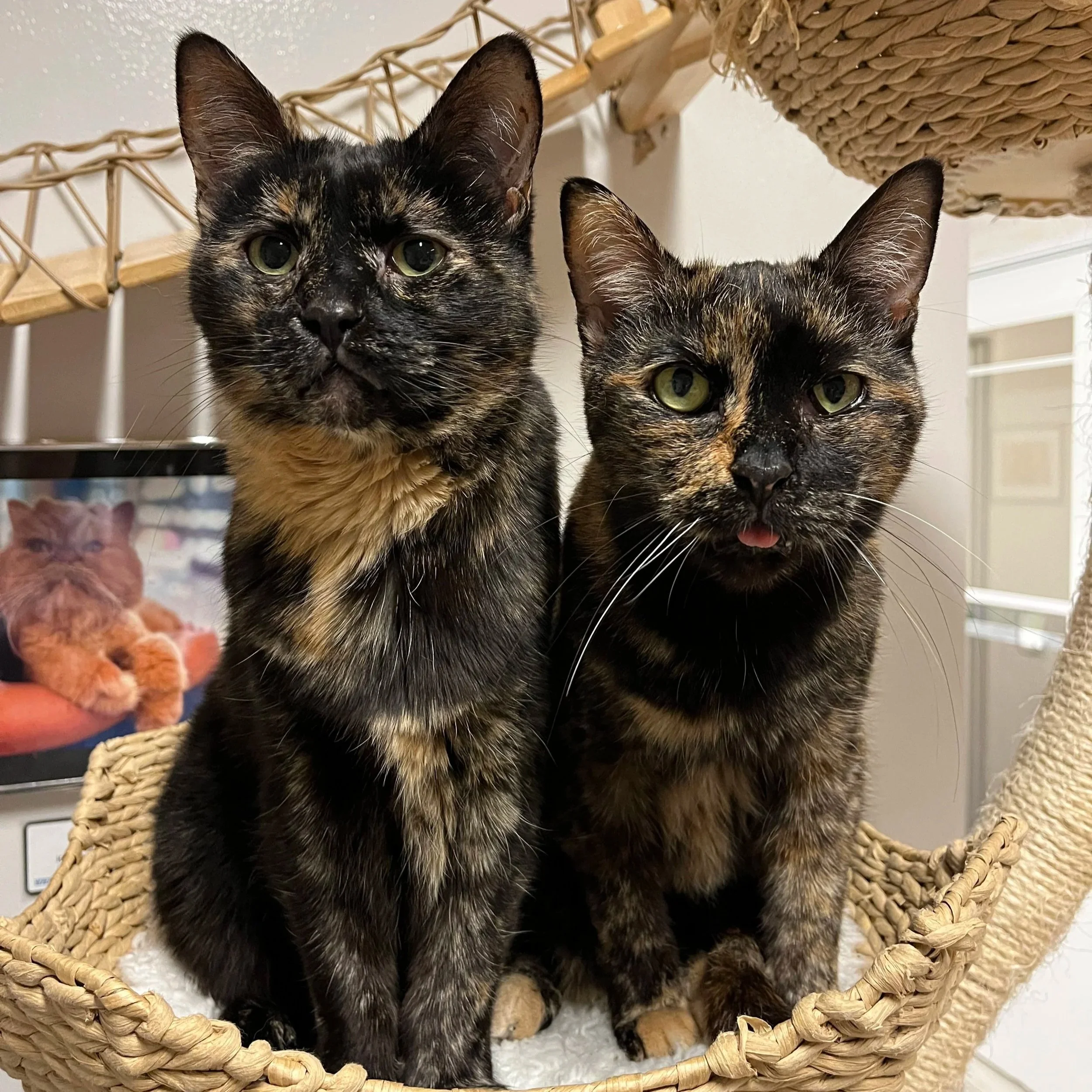 Roxy is a 12 year old sweetheart who has been through rough times the last few years bouncing between homes until she was dropped off at a vet hospital. She has the most incredible purr and loves getting pets and rubs. When she arrived, she weighed 21 pounds which greatly affected her mobility. We worked on getting her braver, helping her to lose weight (19 pounds!), and working with the vets to help her with arthritis. Roxy is living it up with Felix in their pawsome new home!