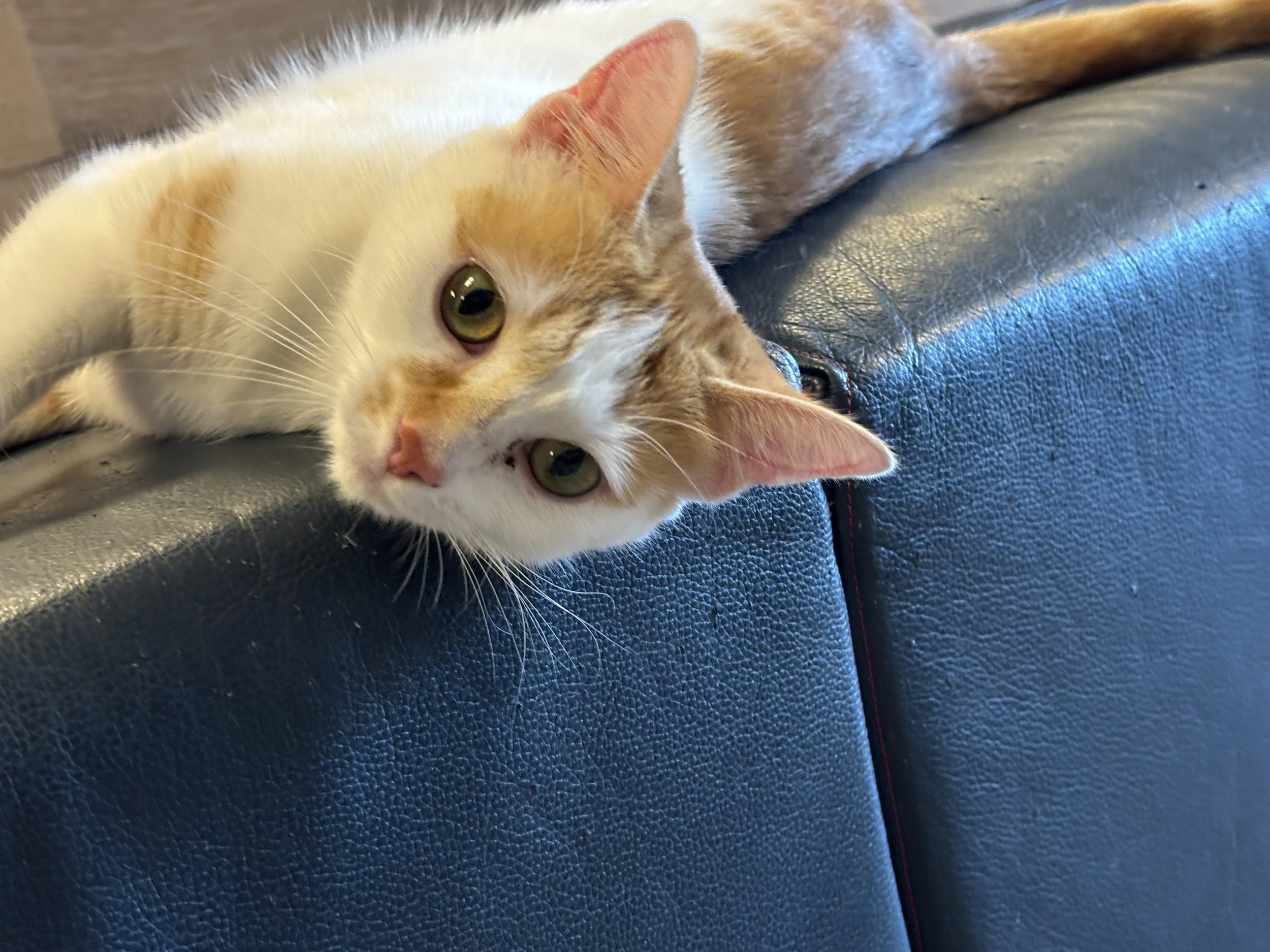 Aren’t Milo’s eyes mesmerizing? Milo is a 7 year old who was surrendered to PALS when his family moved. Although he is often hiding during guest hours, he is super friendly and lovable when feeling brave and will probably follow you around everywhere you go. He loves to play and has quite the jump for a chonky cat. Milo is a shedding machine, but loves being brushed all over!
