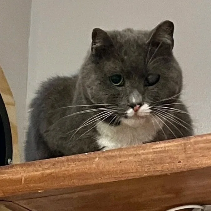 Meet our newest shy cat project, Biff! He’s definitely has the same level of shyness as Clooney, Pixie, and Clooney before him. This 6 year old has been through a lot and was saved by the pawsome people at PAWS Wakefield, who fostered him and gave him the medical care he needed. Most of his teeth have been removed and he is blind in one eye. Biff will not let anyone touch him, but is very curious about other cats and even let Monty groom his head. We know it will take a long time, but we are excited to help him feel more confident and make friends here.